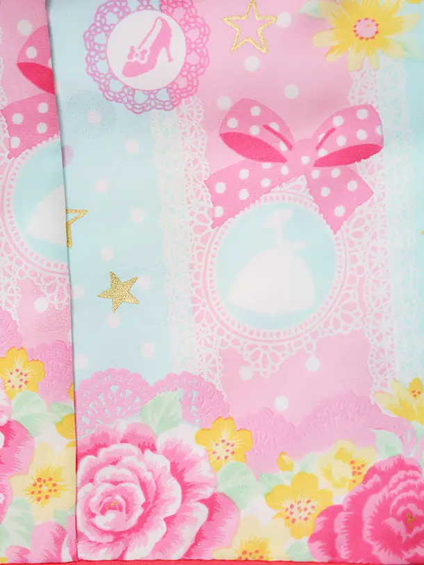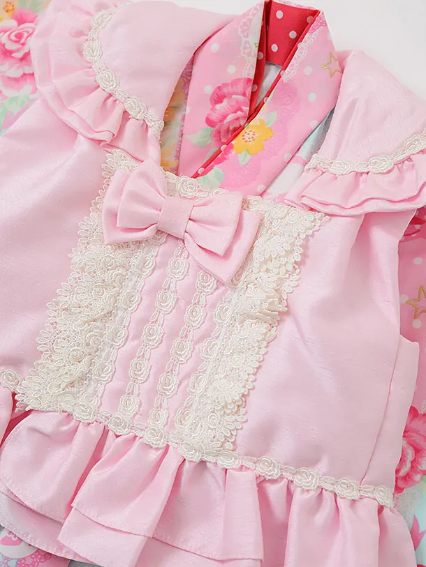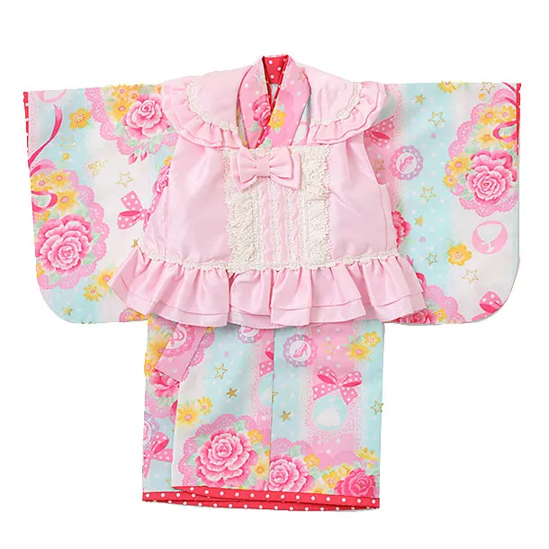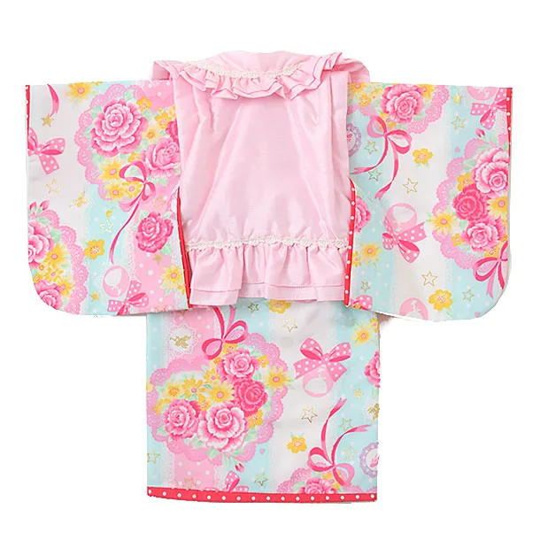 女児ベビー着物 0007 seiko ピンク×水色バラ/被布