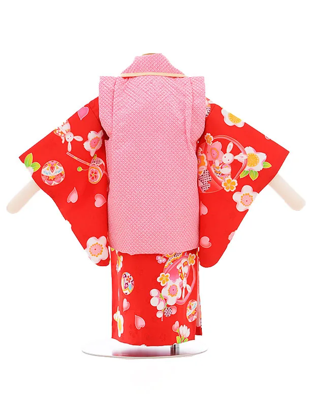 女児ベビー着物 0009 ピンク×赤 うさぎ/セパレート