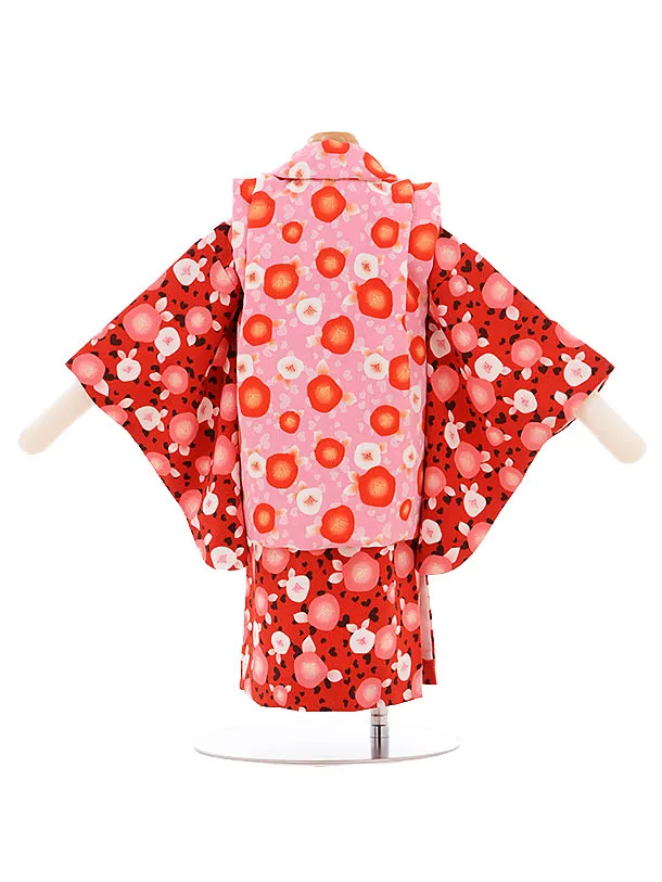 女児ベビー着物 0014 ピンク×赤 ハート椿/セパレート