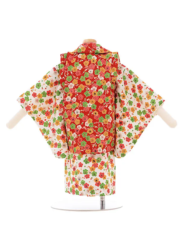 女児ベビー着物 0016 赤×白 梅/セパレート