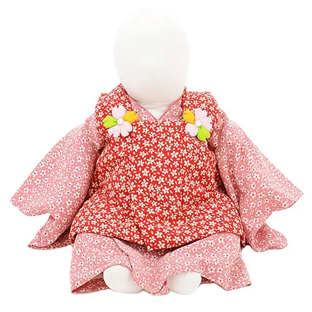女児【100日~1歳用】 0021 ピンク小花×赤袴/ワンピース