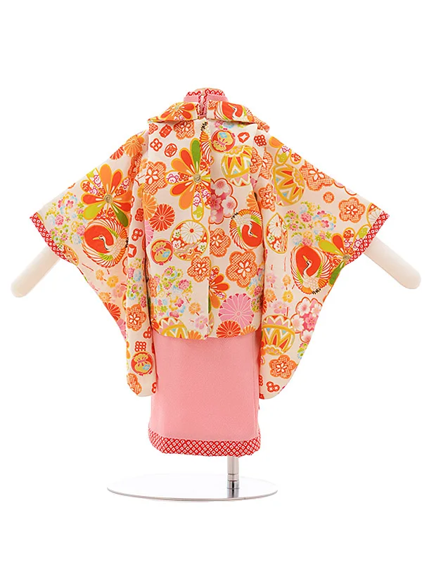 女児ベビー着物 0035 ジャパンスタイル クリーム×ピンク セパレート
