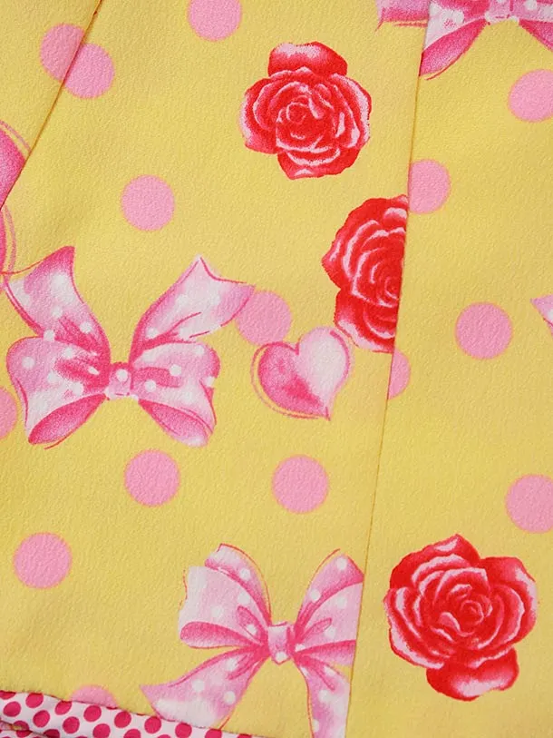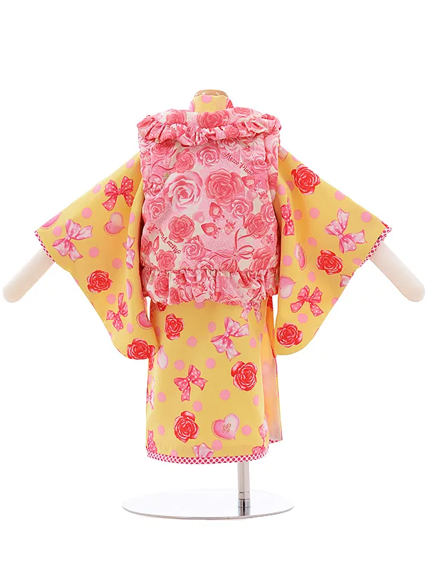 女児ベビー着物 0036 メゾピアノ 白地 バラ×黄色 ドット リボン