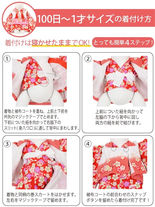 女児【100日~1歳用】 0068 赤×白 梅/セパレート