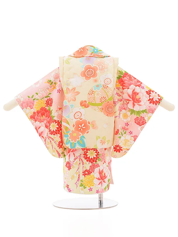 女児【1歳前後】0083 クリーム色x うすピンク花