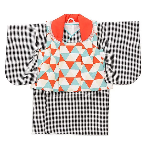 女児【100日~1歳用】0088 白赤ミントx白黒ラメxギンガムチェック