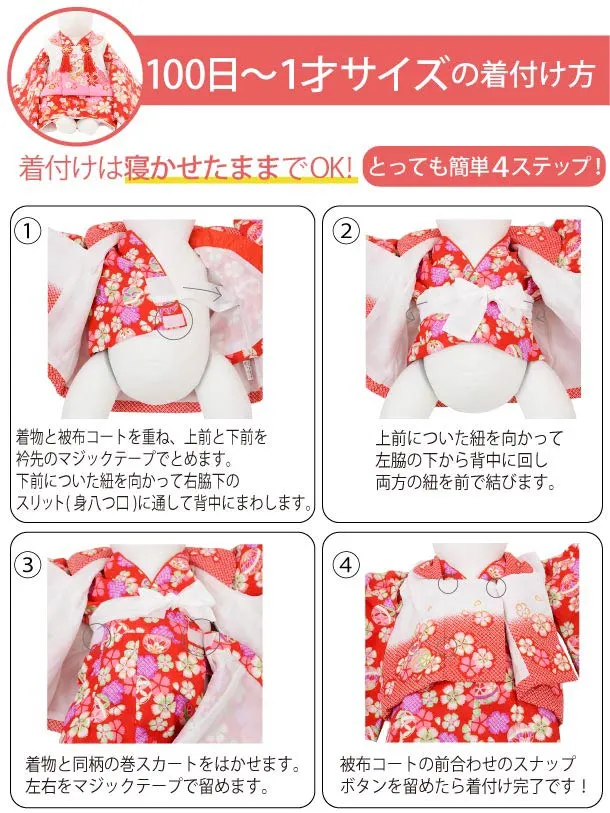 簡単に着せられるちりめん生地の可愛いベビー被布着物です。