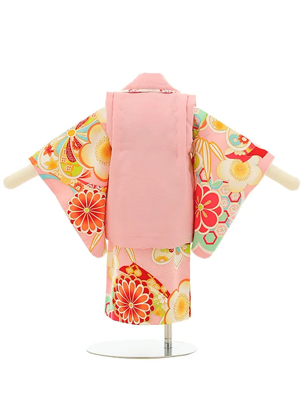女児【1歳前後】0103 ピンク刺繍花丸×ピンク 梅菊/セパレート