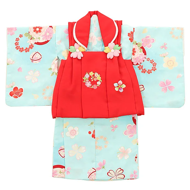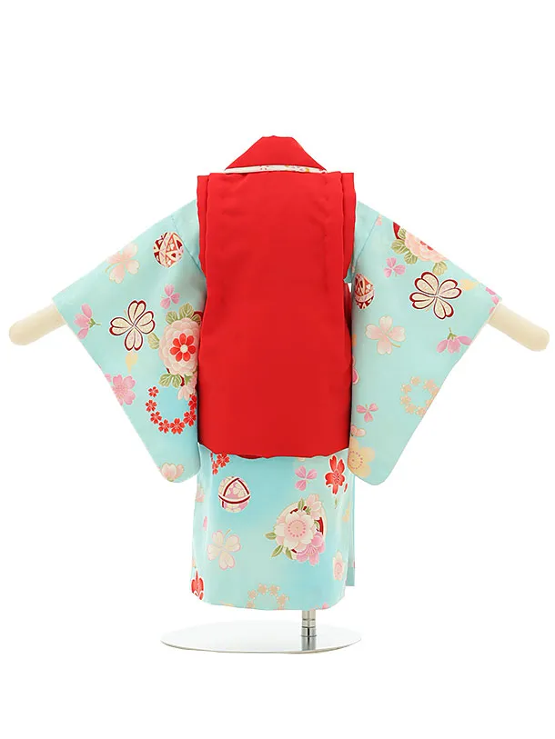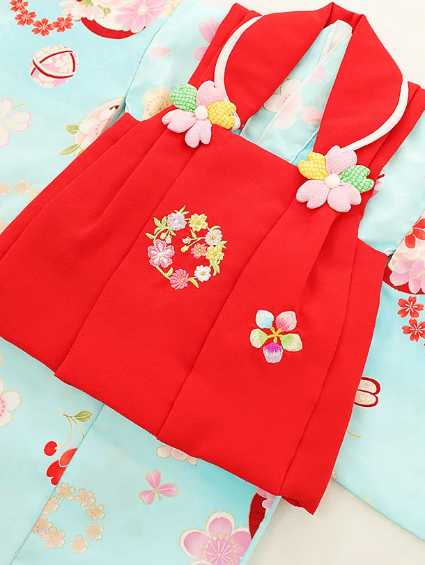 女児【1歳前後】0104 赤刺繍花丸×水色まり花/セパレート