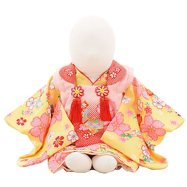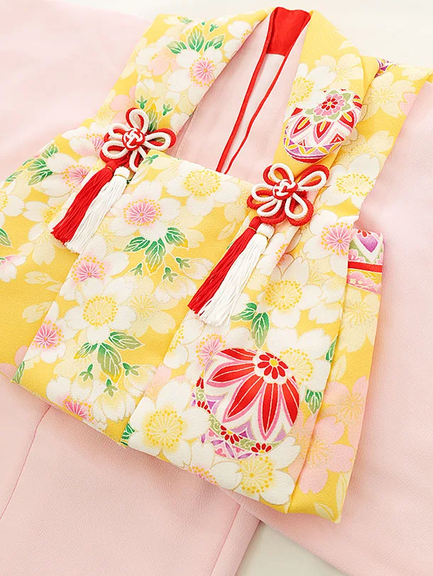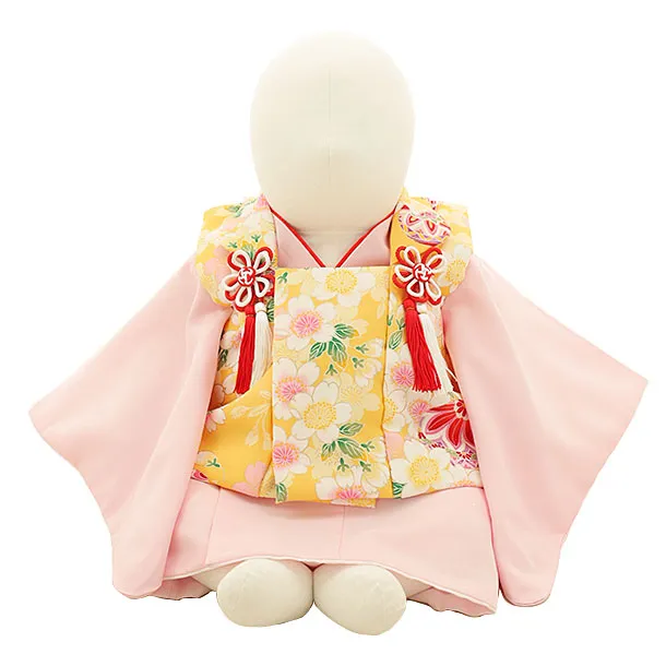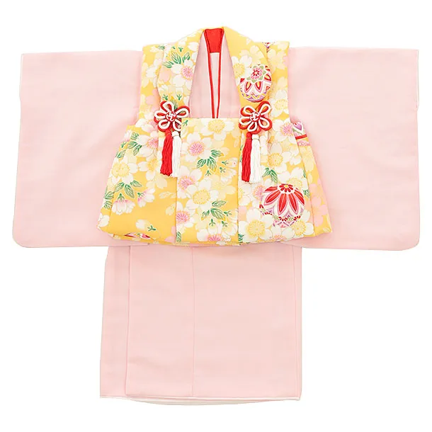 女児【100日~1歳用】0124 黄色地桜まり x 薄ピンク/セパレート