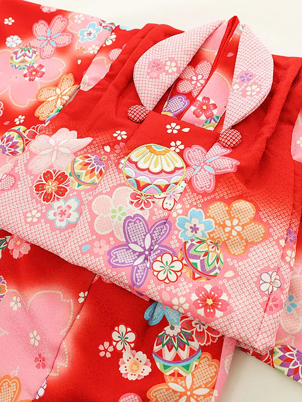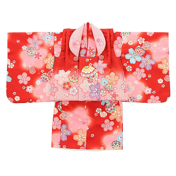 女児【100日~1歳用】0130 赤ピンク疋田柄まり x 赤桜/セパレート