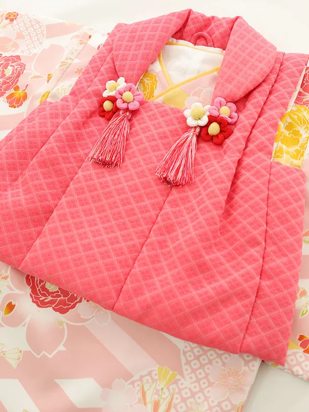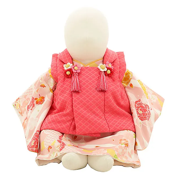 女児【100日~1歳用】0131 ピンク菱地模様 x 薄ピンク白地花