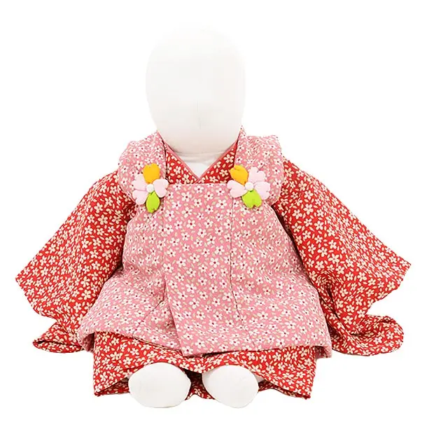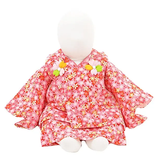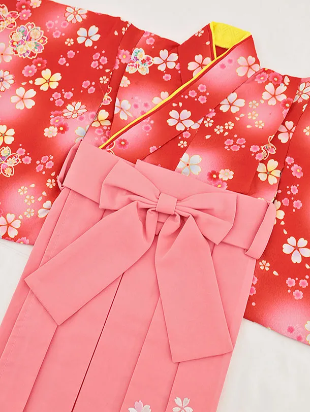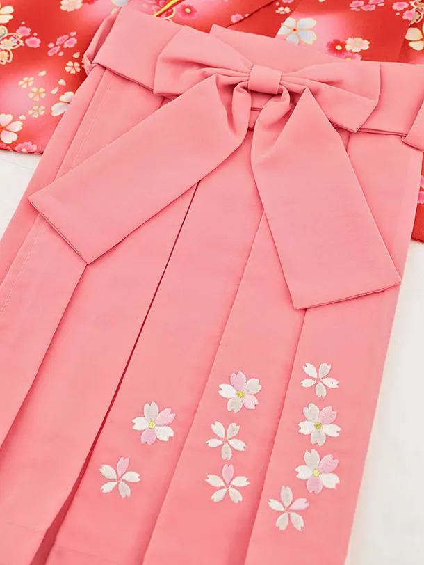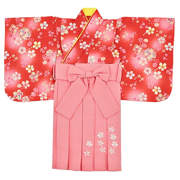 女児【100日~1歳用】0164 赤小花×ピンク袴/ワンピース