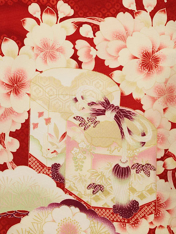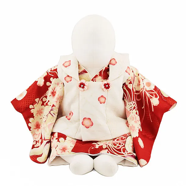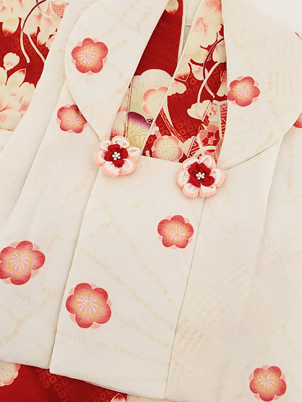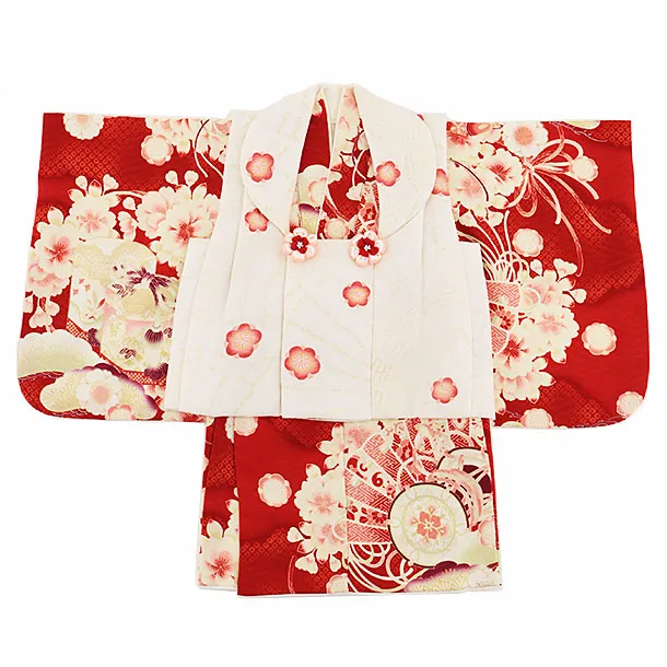 女児【100日~1歳用】0165 華徒然 白梅×赤扇面/セパレート