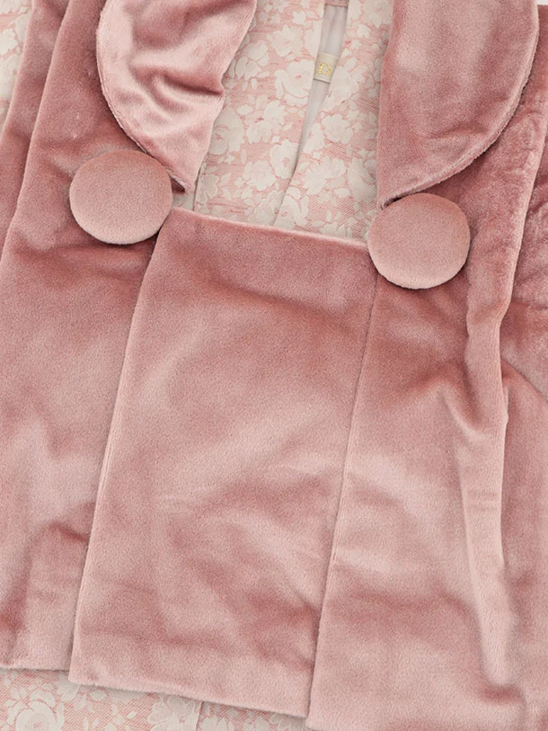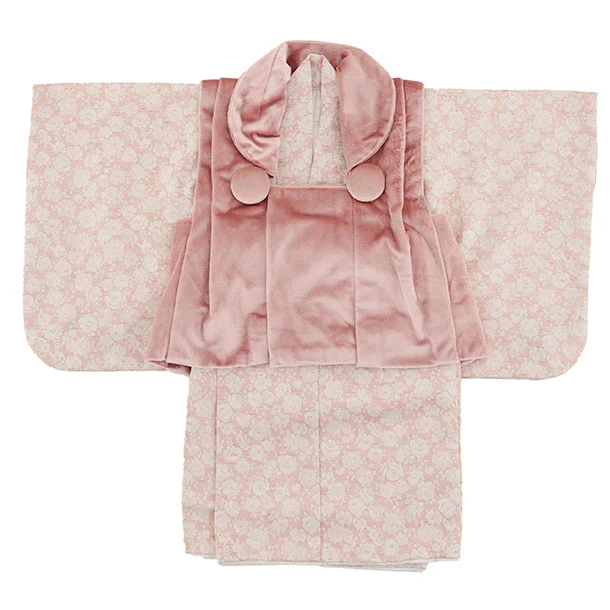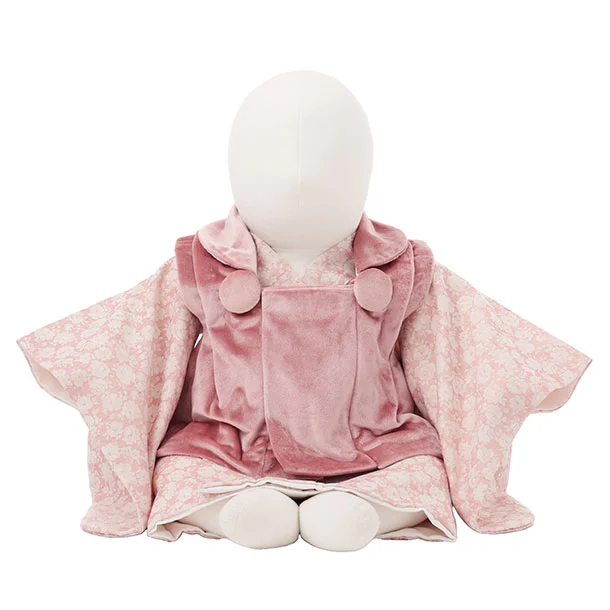 女児【100日~1歳用】0176 ベロアピンク x ピンク花/セパレート