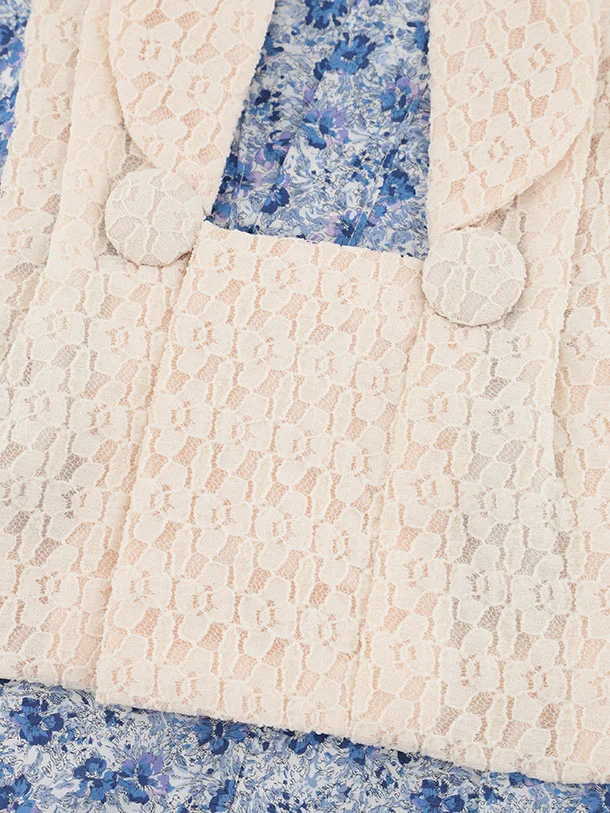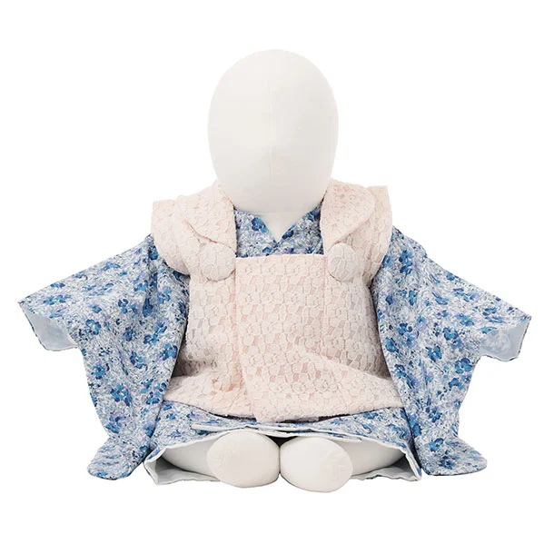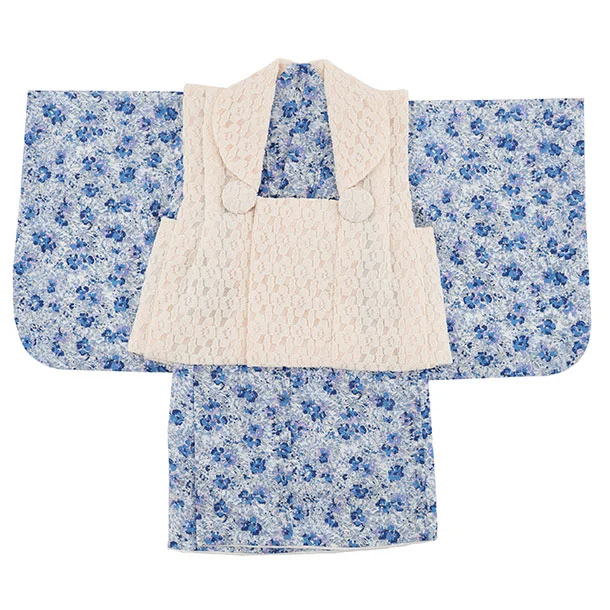 女児【100日~1歳用】0177 ベージュレース x 青花柄/セパレート