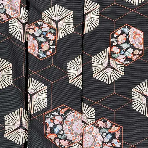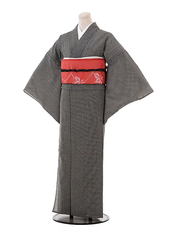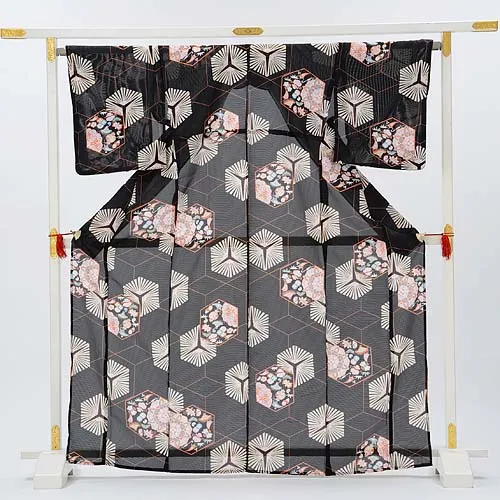 夏小紋レンタル 絽 0066黒地宝尽くし(化繊)