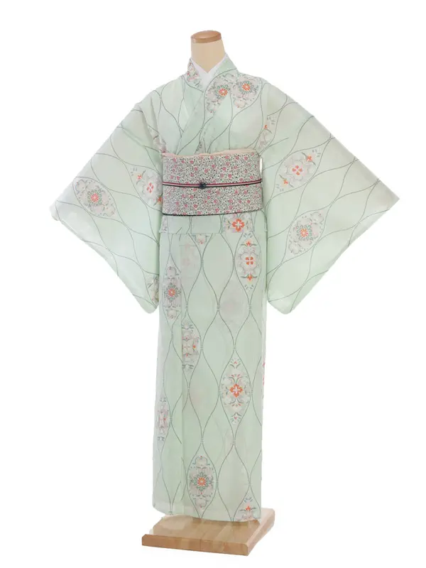 夏小紋レンタル 絽 0071グリーン小梅柄(化繊)