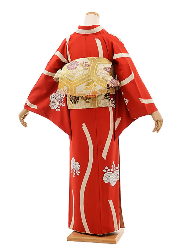 小紋レンタル462深紅に桐(化繊)