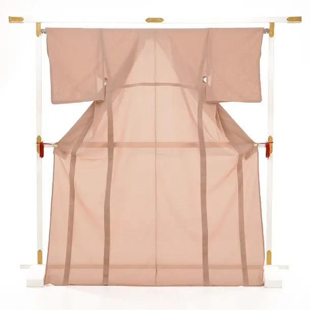 夏小紋 絽 591 ピンクベージュ格子(化繊)