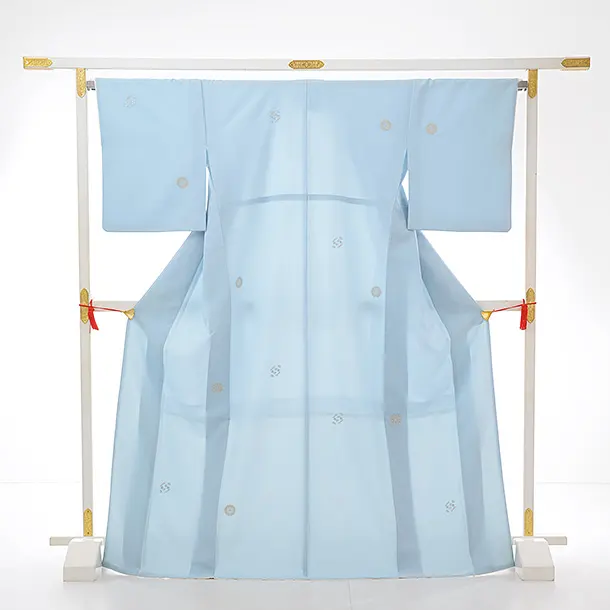 小紋レンタル770 水色地 刺繍 丸紋