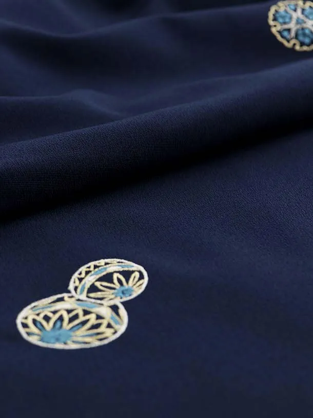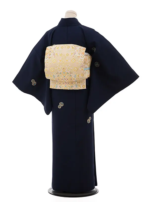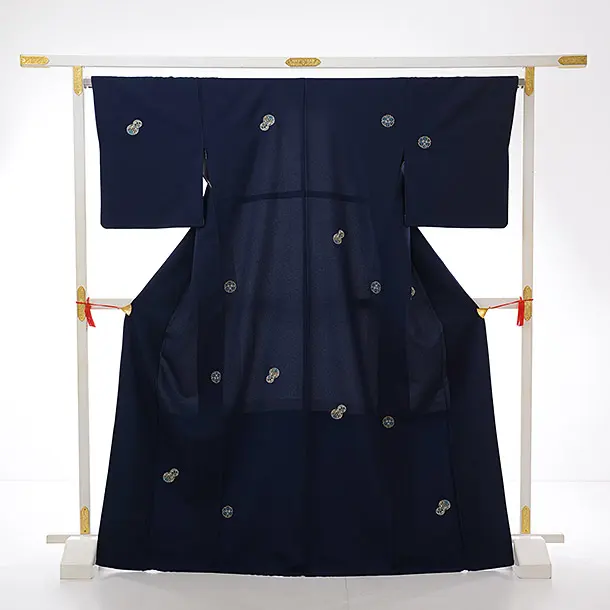 小紋レンタル773 紺地 刺繍 まり 雪輪