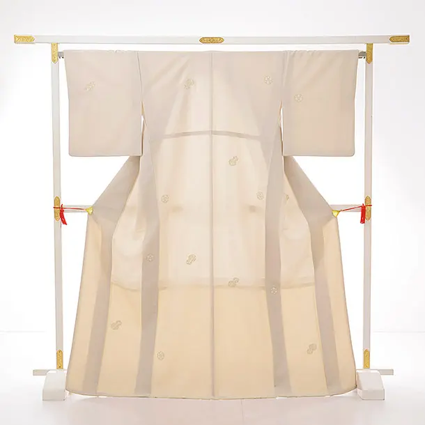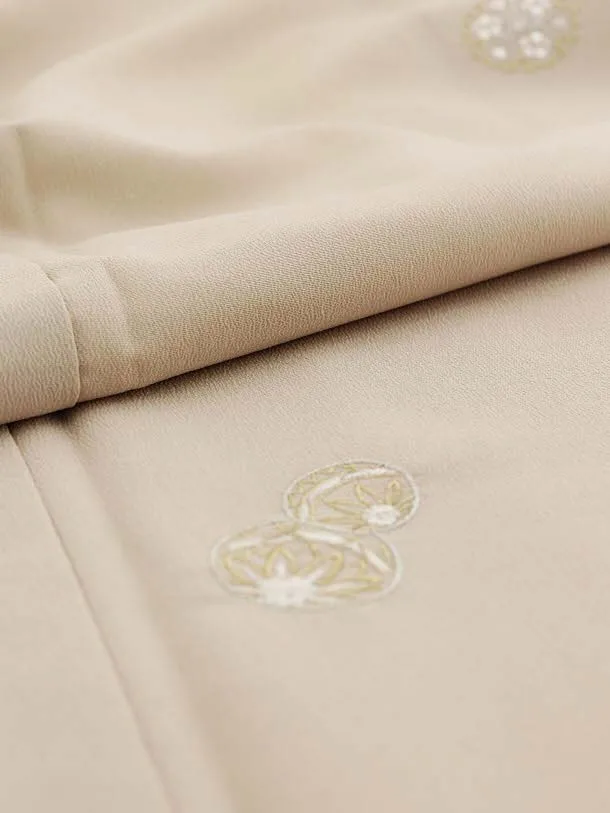 小紋レンタル776 うすベージュ地 刺繍 まり 雪輪