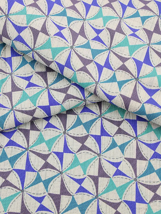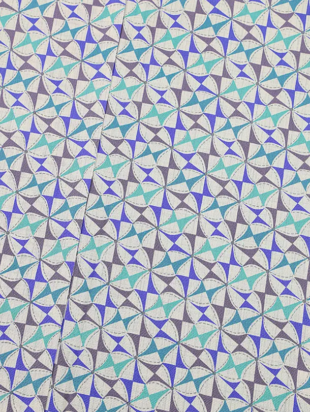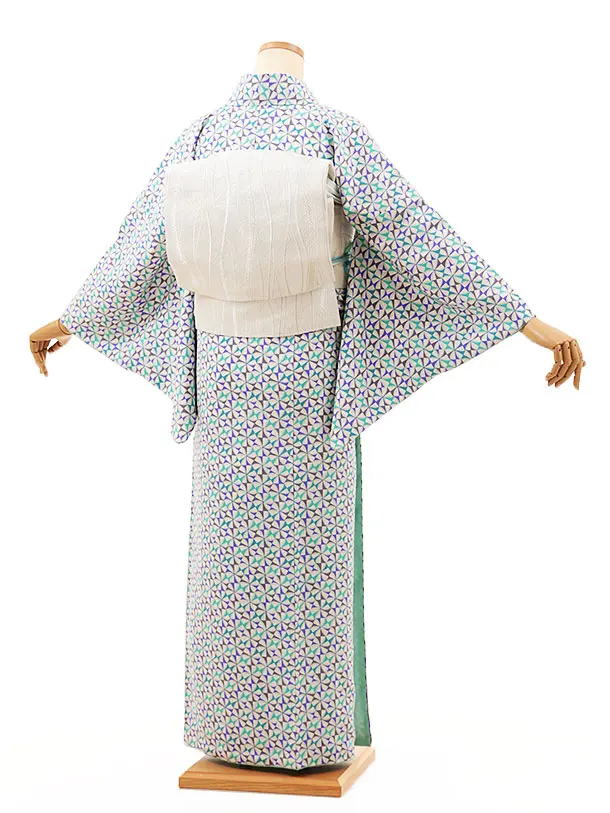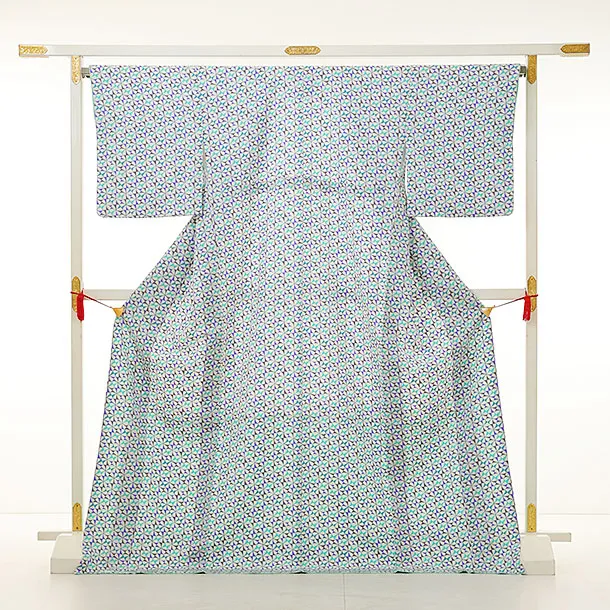 小紋1050 白パープルグリーン 風車(正絹)