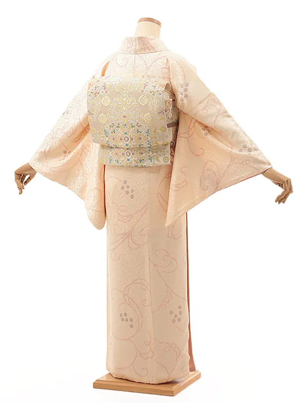 小紋1351 クリームピンク 木の実(正絹)