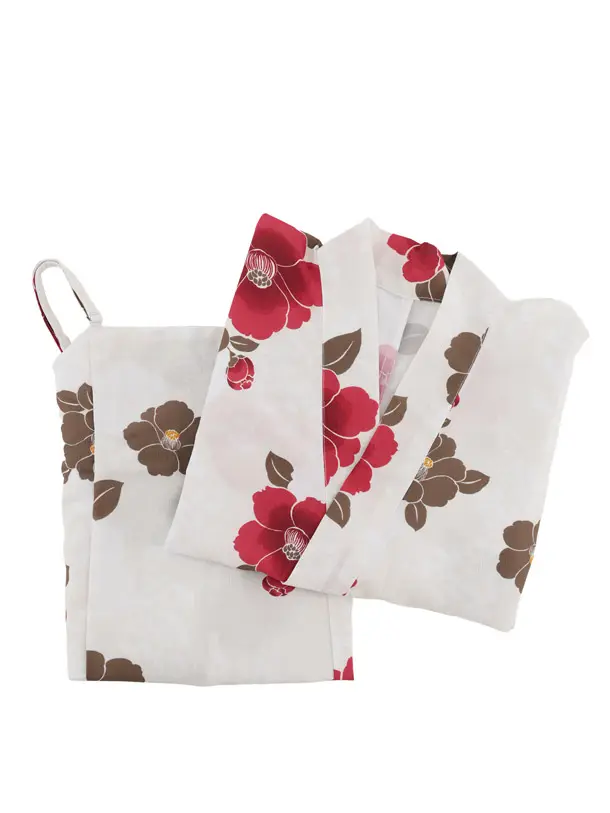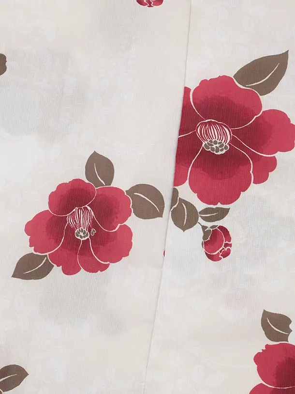 浴衣0064 華徒然 2WAYゆかた 椿 ベージュ