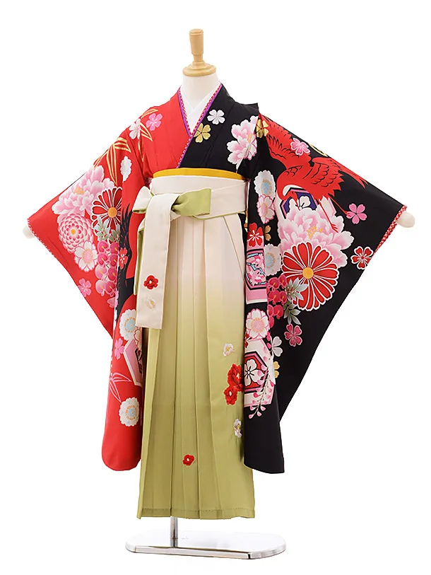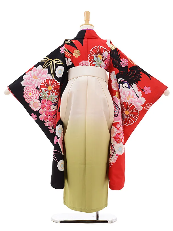 女児袴(7歳)7638 JAPAN STYLE 黒赤 ぼたん×クリームぼかし袴