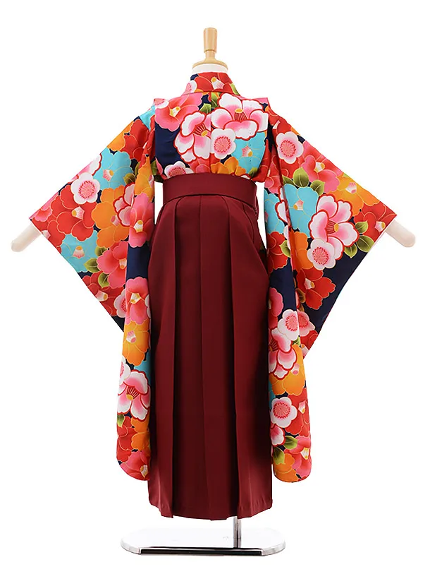 女児袴レンタル(7歳)7644 小町kids 紺地 椿×エンジ袴