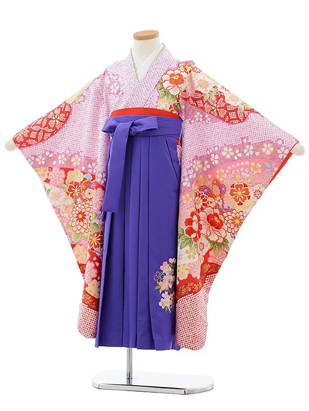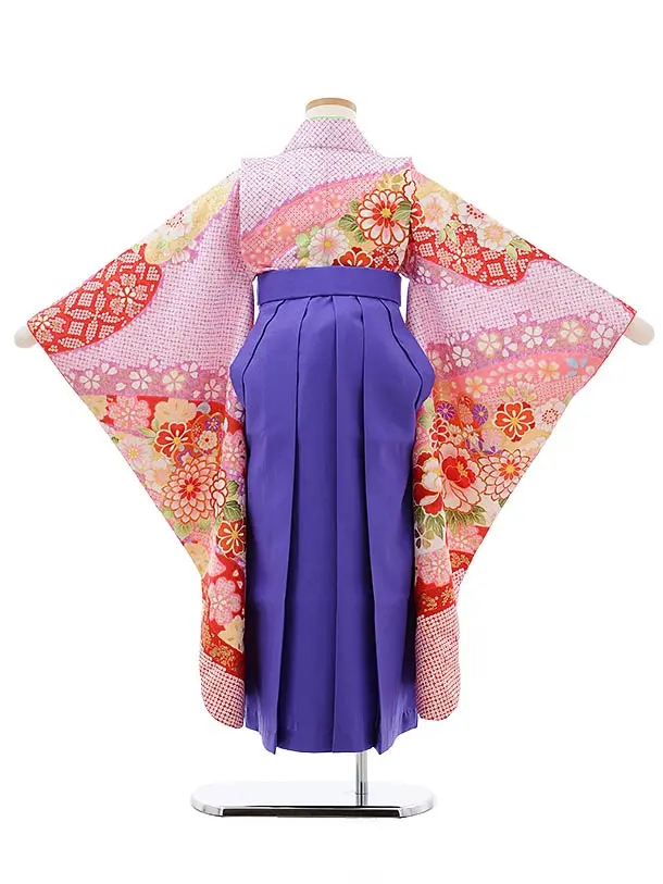女児袴レンタル(7歳)7805パープル地鹿の子柄×パープル袴