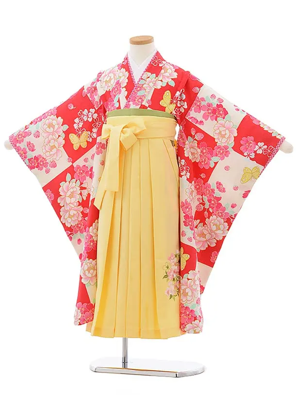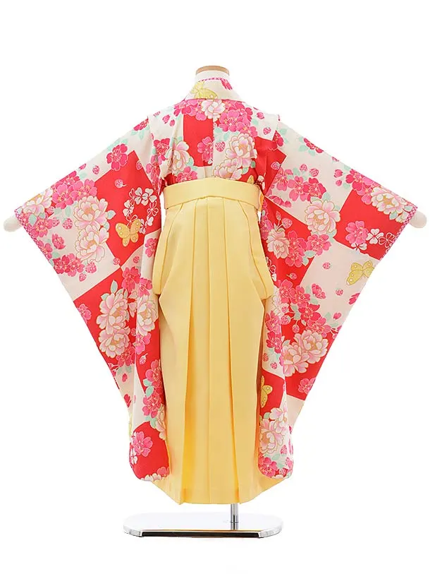 女児袴レンタル(7歳)7811チェリーピンク地に蝶×黄色袴