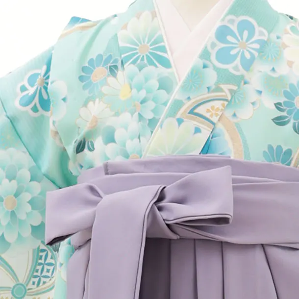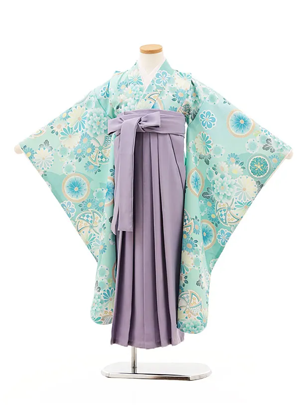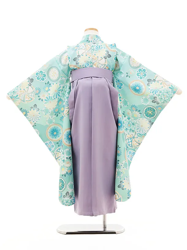 女児袴レンタル(7歳)Y306 ペールグリーン 丸紋花×ラベンダー袴