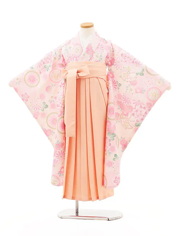 女児袴レンタル(7歳)Y307 ピンク 丸紋花×サーモンピンク袴