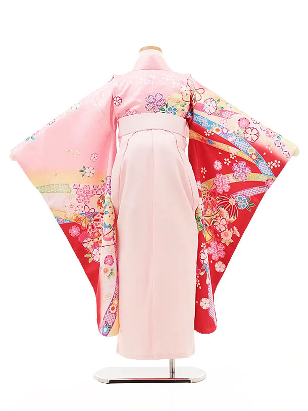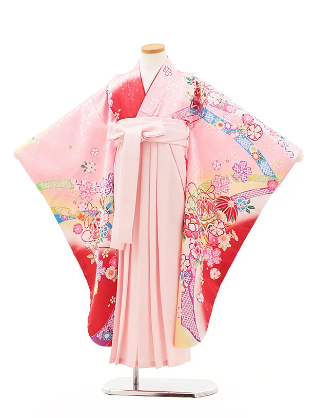 女児袴レンタル(7歳)Y310 ピンク裾赤 鞠 鈴花×ピンク袴