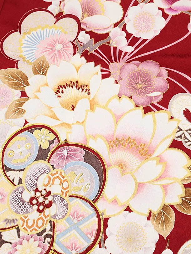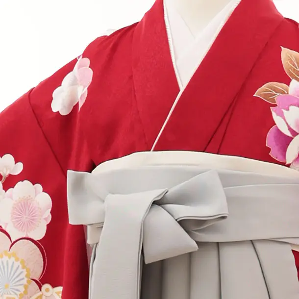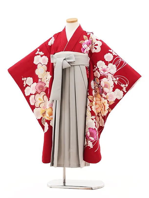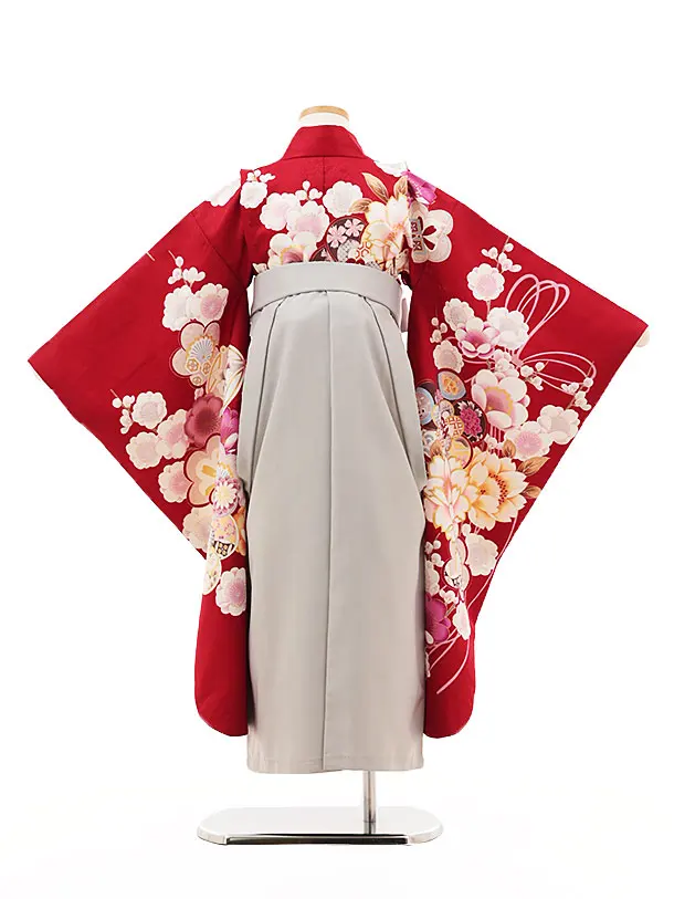 女児袴レンタル(7歳)Y315 濃赤地 梅花づくし×グレー袴