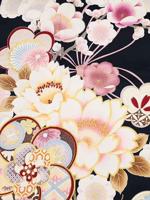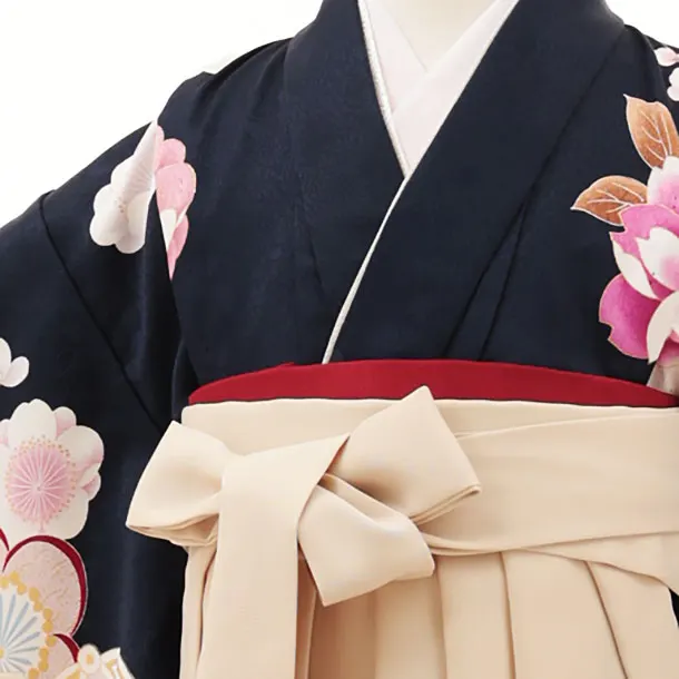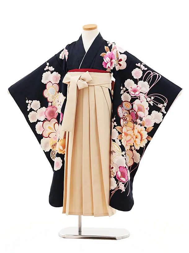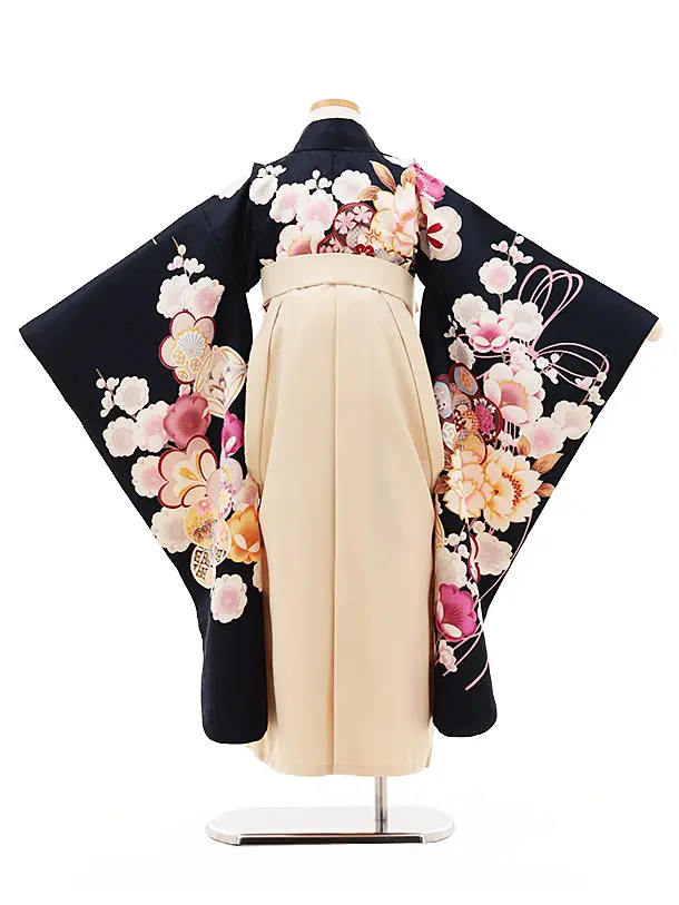 女児袴レンタル(7歳)Y317 紺地 梅花づくし×アイボリー袴