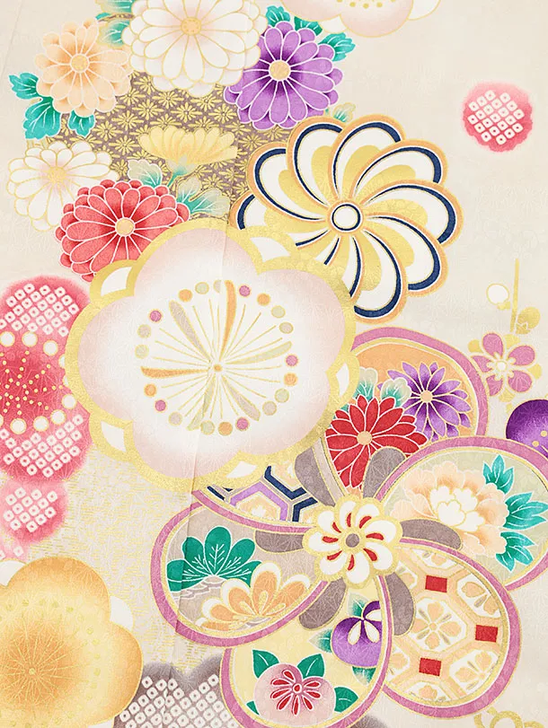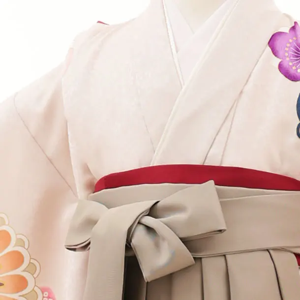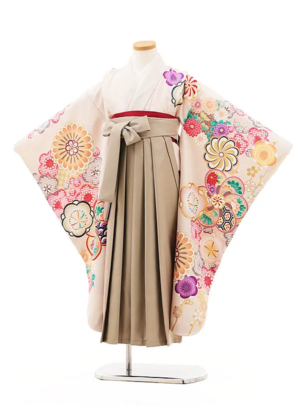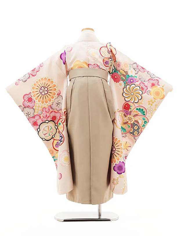 女児袴レンタル(7歳)Y326 薄ベージュ ねじり梅菊×モカベージュ袴