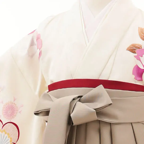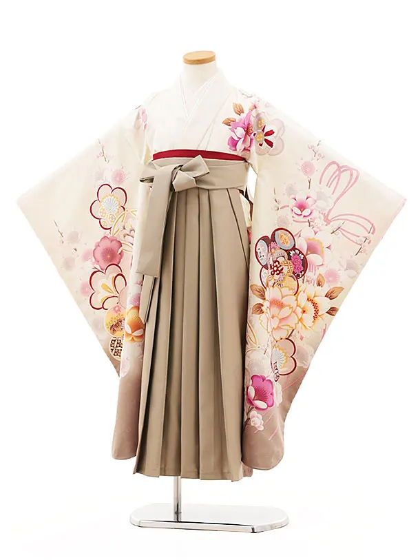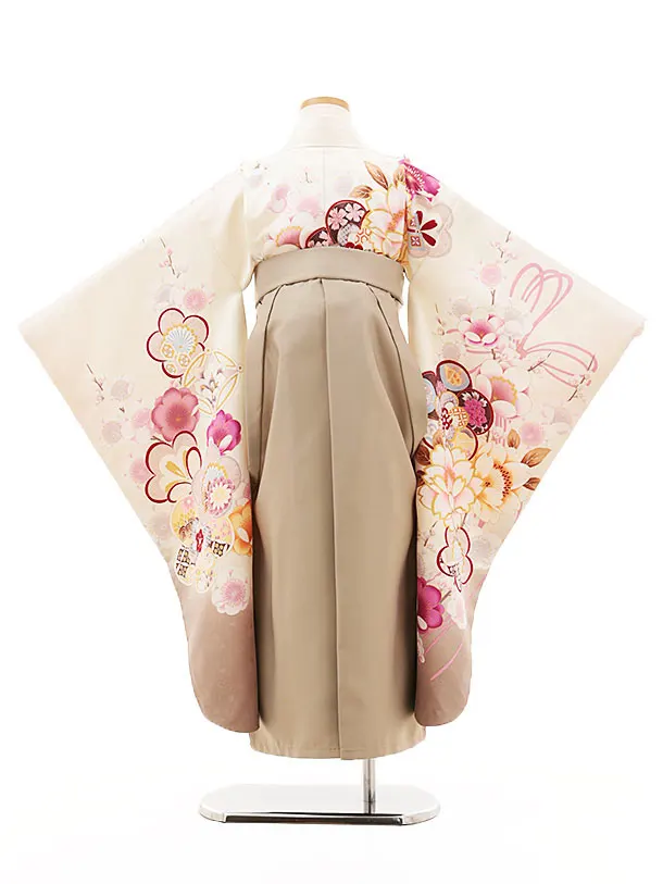 女児袴(7歳)Y327 オフホワイト 裾ぼかし 梅花づくし×モカベージュ袴