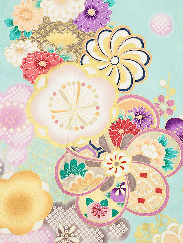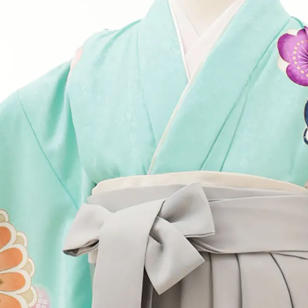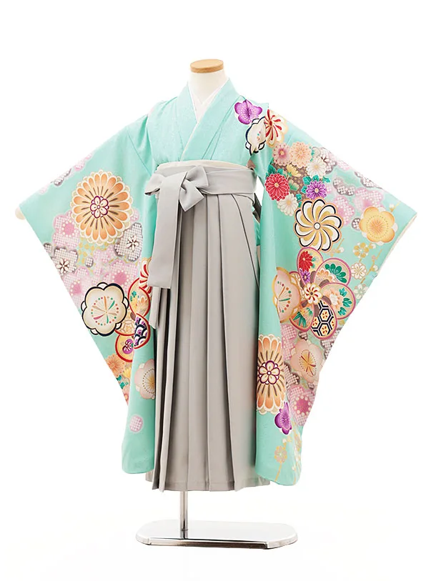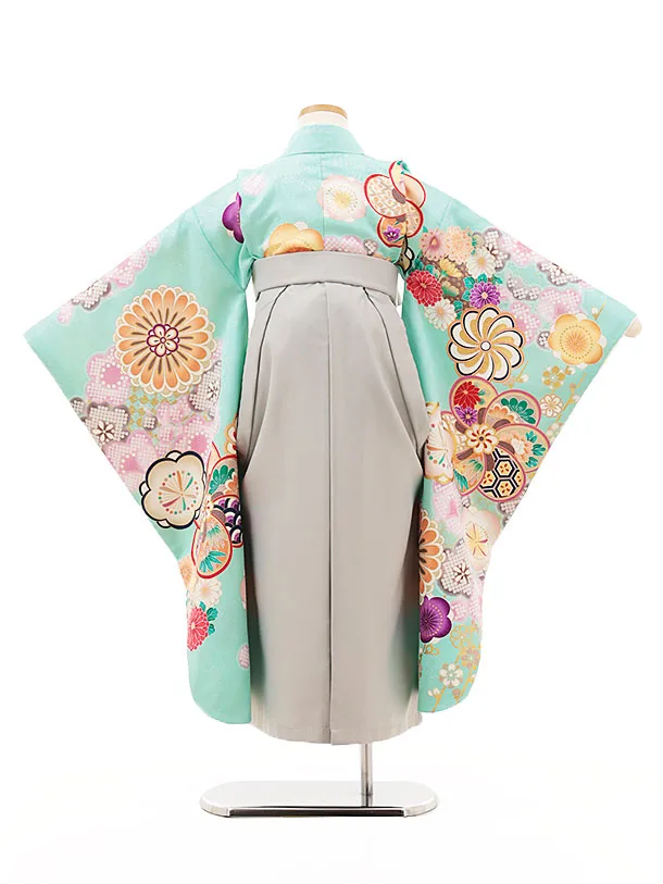 女児袴レンタル(7歳)Y332 パステルグリーン ねじり梅菊×グレー袴