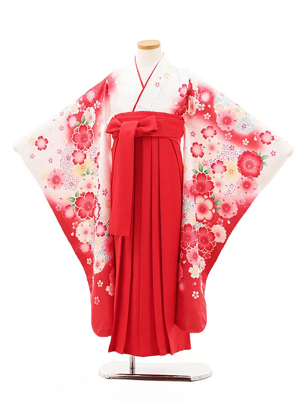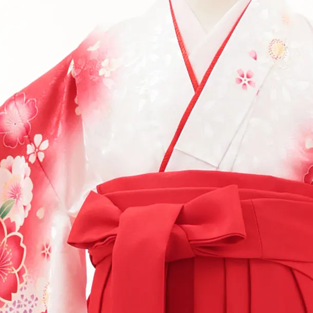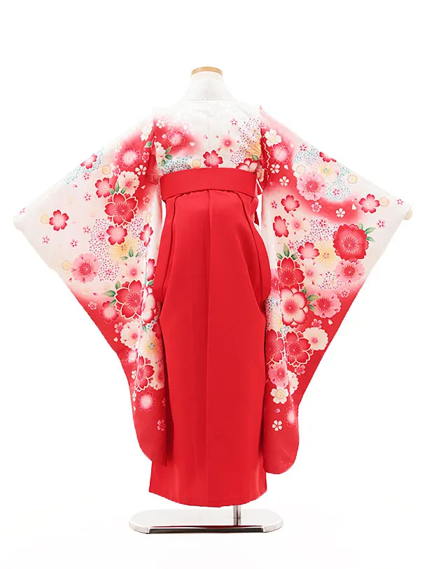 女児袴レンタル(7歳)Y339 白赤 ぼかし 桜×朱赤袴