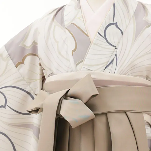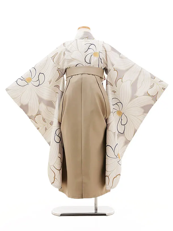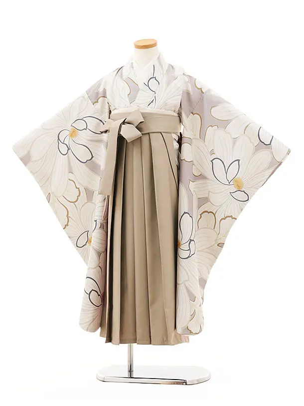 女児袴レンタル(7歳)Y349 グレージュ 大きな花×モカベージュ袴