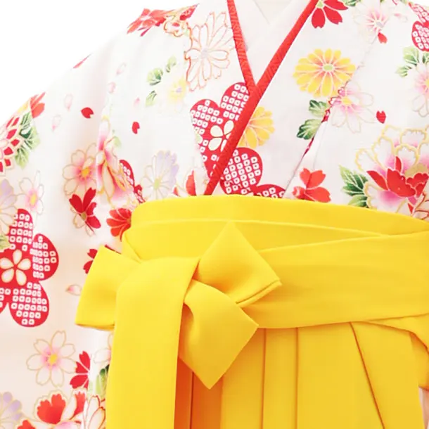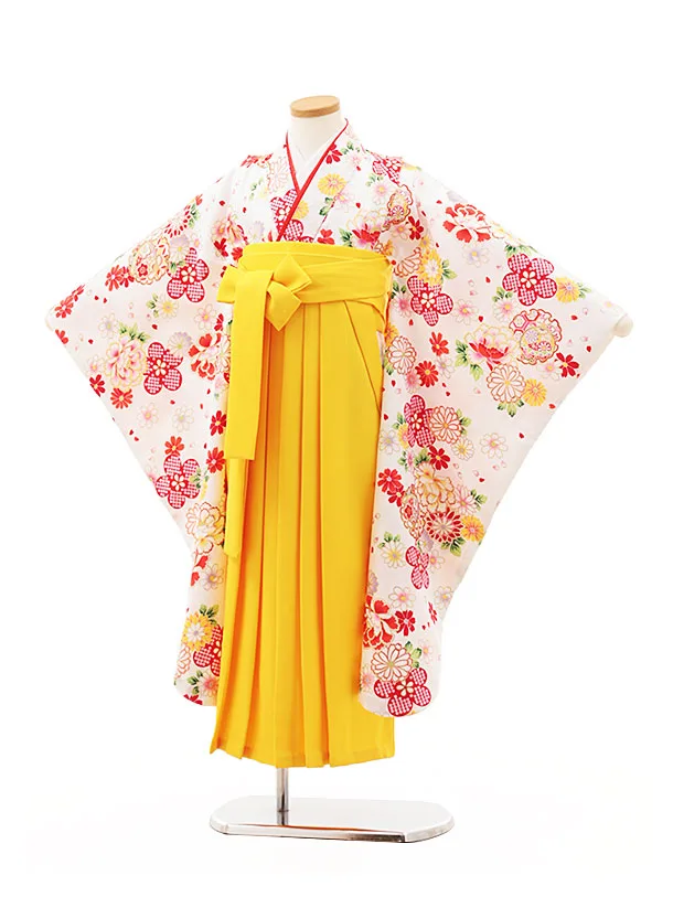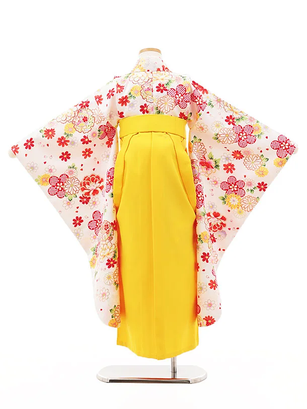 女児袴レンタル(7歳)Y384 白地 赤花×黄色袴