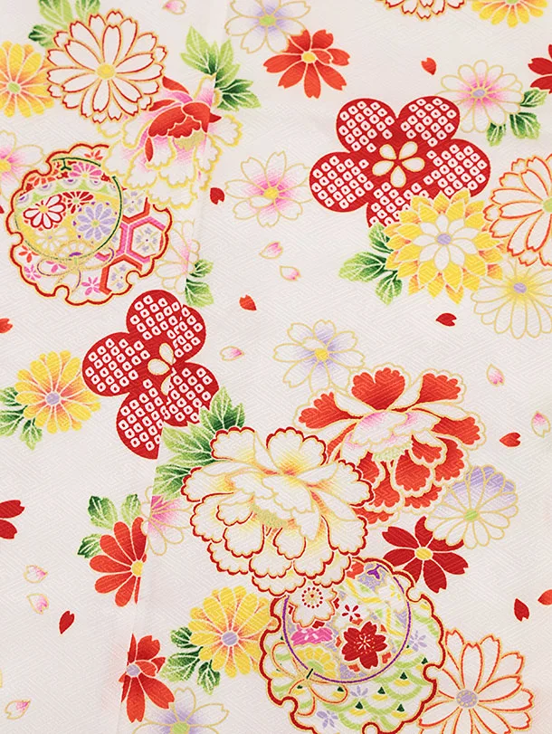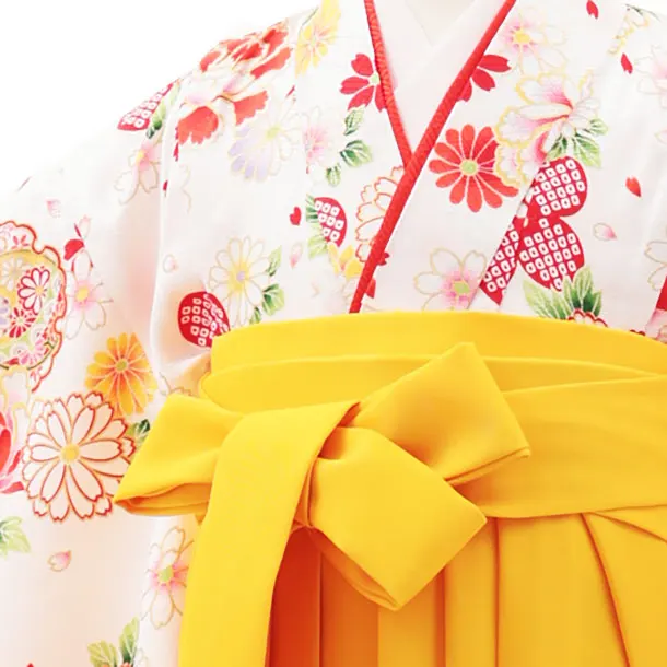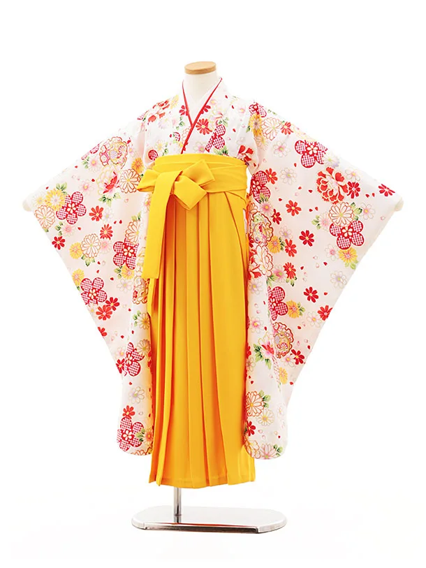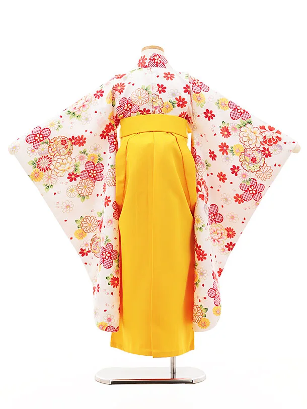 女児袴レンタル(7歳)Y385 白地 赤花×黄色袴