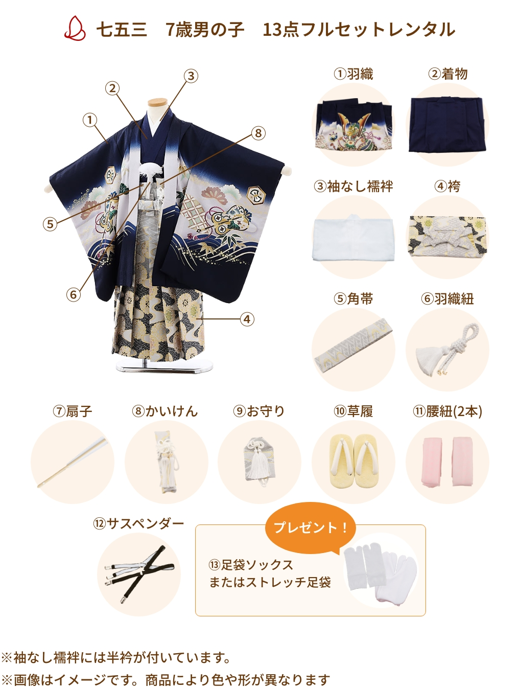 男児卒園袴(5歳,6歳) 0813 小町kids 紺 矢柄×黒袴
