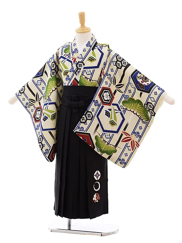 男児卒園袴(5歳,6歳) 0823 小町kids クリーム地 宝尽し×黒袴