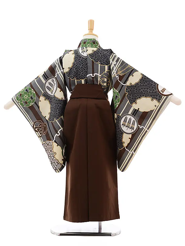 男児卒園袴(5歳,6歳) 0824 小町kids グレー 宝尽し×茶色袴