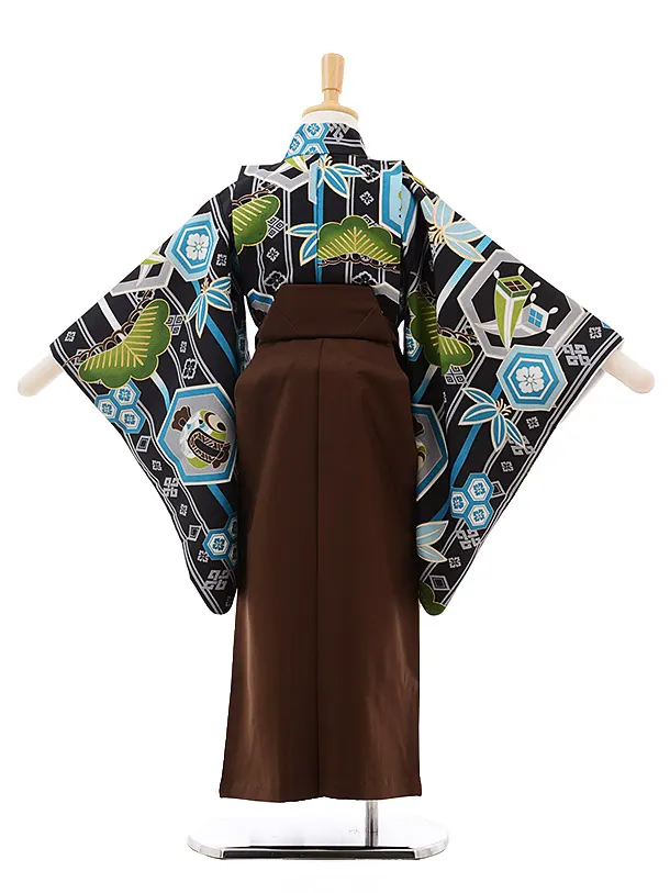 男児卒園袴(5歳,6歳) 0826 小町kids 黒地 宝尽し×茶色袴